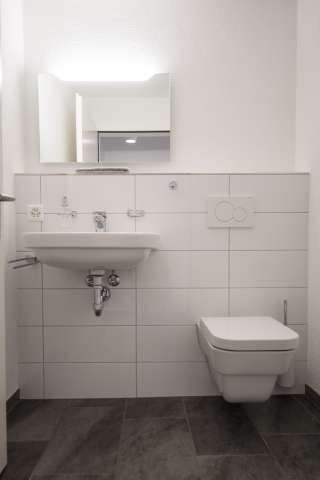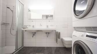 - Ein Bad mit WC, Dusche, Waschmaschine und Tumbler