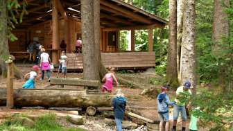1. Waldhaus mit Tischen und Bänken, Toilette, Feuer- und Wasserstelle, Kochutensilien, Unterrichtsmaterialien, Spiele
