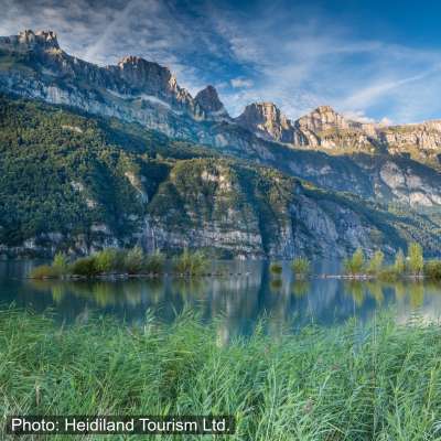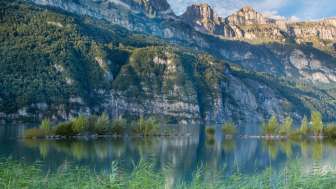 Der Walensee im Osten der Schweiz wird auf seiner Nordseite von den steil aufragenden Churfirsten begrenzt. Die Szenerie mit dem tiefblauen See und den steilen Felswänden erinnert an einen norwegischen Fjord. Eine Besonderheit stellt das autofreie Weindörfchen Quinten dar, das nur zu Fuss oder mit dem Walenseeschiff erreicht werden kann. Hier lässt das milde Klima Kiwis und Feigen gedeihen. Zwischen Weesen und Quinten locken zudem die dreistufigen Seerenbachfälle, welche zu den höchsten Wasserfällen der Schweiz zählen. Ob ein ausgedehnter Spaziergang am Seeufer, ein Sonnenbad am Strand oder eine gemütliche Schifffahrt, ob Wassersport, Wandern oder Biken: Die Gegend am Walensee ist wie gemacht für aktive Gäste.