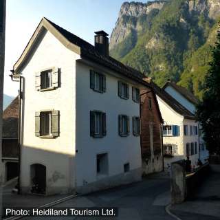 Das Wasch-/Pächterhaus in Fläsch, getrennt durch eine Gasse vom Hauptgebäude, diente einst als Wasch- und Pächterhaus. Heute bietet es auf zwei Etagen Wohnraum und hat eine rückseitige Holzerweiterung aus dem Jahr 1925.