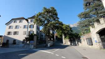 Die Weinkellerei POLA der Familie von Sprecher liegt am Städtliplatz in Maienfeld. Ein Tor oberhalb des Städtchens Maienfeld führt zum Rebberg.