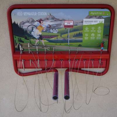 Die Werkzeugstation befindet sich am WC-Häuschen neben dem Bahnhofsgebäude.