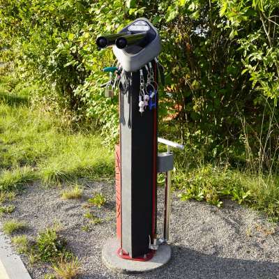 Diese vollausgestattete Werkzeugstation beim Werkhof Gais verfügt über eine Velopumpe, verschiedene Schraubenzieher, Schlüssel und Plättchen für den Reifenwechsel.