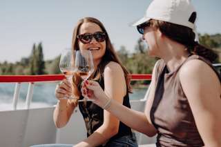 Degustiere auf der Fahrt von Schaffhausen nach Stein am Rhein die köstlichen Tropfen aus dem Schaffhauser Blauburgunderland an Bord der URh und geniesse dazu eine der schönsten Strom-Schifffahrten Europas.