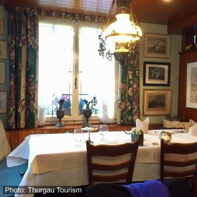 Diese gemütliche Wirtschaft, im 400-jährigen Riegelhaus, ist eine gute Adresse für jede Gelegenheit. Thomas Bodenmann, Besitzer und Küchenchef, geht auf die Wünsche seiner Gäste ein. Er verwöhnt sie mit einer seiner spontanen, kreativen und leichten, der Saison angepassten Küche. Er kocht mit spezieller Sorgfalt und Innovationsfreude eine grosse Auswahl von frischen Bodensee-Fischen. Für Überraschungen sorgen immer wieder seine Spezialitäten, etwa jene mit dem ganz speziellen "Thurgauer Etwas".