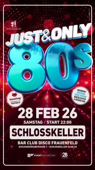 Am Samstag, 28. Februar 2026 katapultiert dich die JUST & ONLY 80’s den Schlosskeller Frauenfeld direkt zurück in das wohl legendärste Jahrzehnt der Musikgeschichte! 💜🕺💃