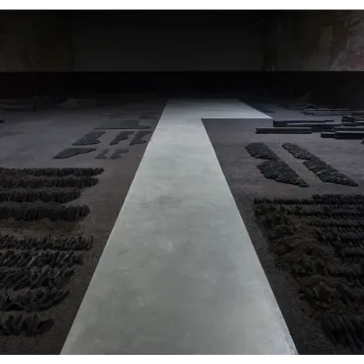 Delcy Morelos (*1967 in Tierralta, Kolumbien) verwandelt die Lokremise in einen Ort, den man nicht nur betrachtet, sondern mit allen Sinnen erlebt: eine raumgreifende, vergängliche Installation aus recycelter Erde, gebrauchtem Holz und Duftessenz. Mit wenigen Materialien und einer nahezu schwarzen, monochromen Farbigkeit schafft sie ein intensives Environment, in dem Sehen, Riechen und Bewegen zu gleichwertigen Formen der Wahrnehmung zusammenwirken.