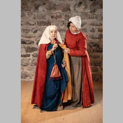 Die Gräfin mit ihrer Magd ist diesen Nachmittag im Schloss. Wenn Du sie antriffst, frag sie, was Du immer schon von ihr wissen wolltest. Vielleicht interessierst Du Dich für ihre Kleidung, ihren Schmuck oder ihre Aufgaben als Gräfin? Die Magd der Gräfin erzählt Dir gerne über die beschwerlichen Arbeiten während des Alltags im Schloss. Die Gräfin zeigt Dir die wertvollen Stoffe ihrer vornehmen Gewandung und erklärt Dir, warum sie ihre Haare bedeckt hält.